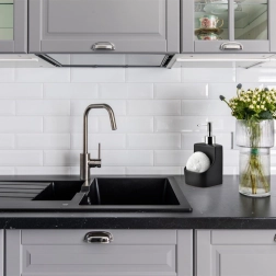 Le corps en céramique de qualité, en noir mat, s’intègre parfaitement aux intérieurs modernes ou industriels et se nettoie facilement.