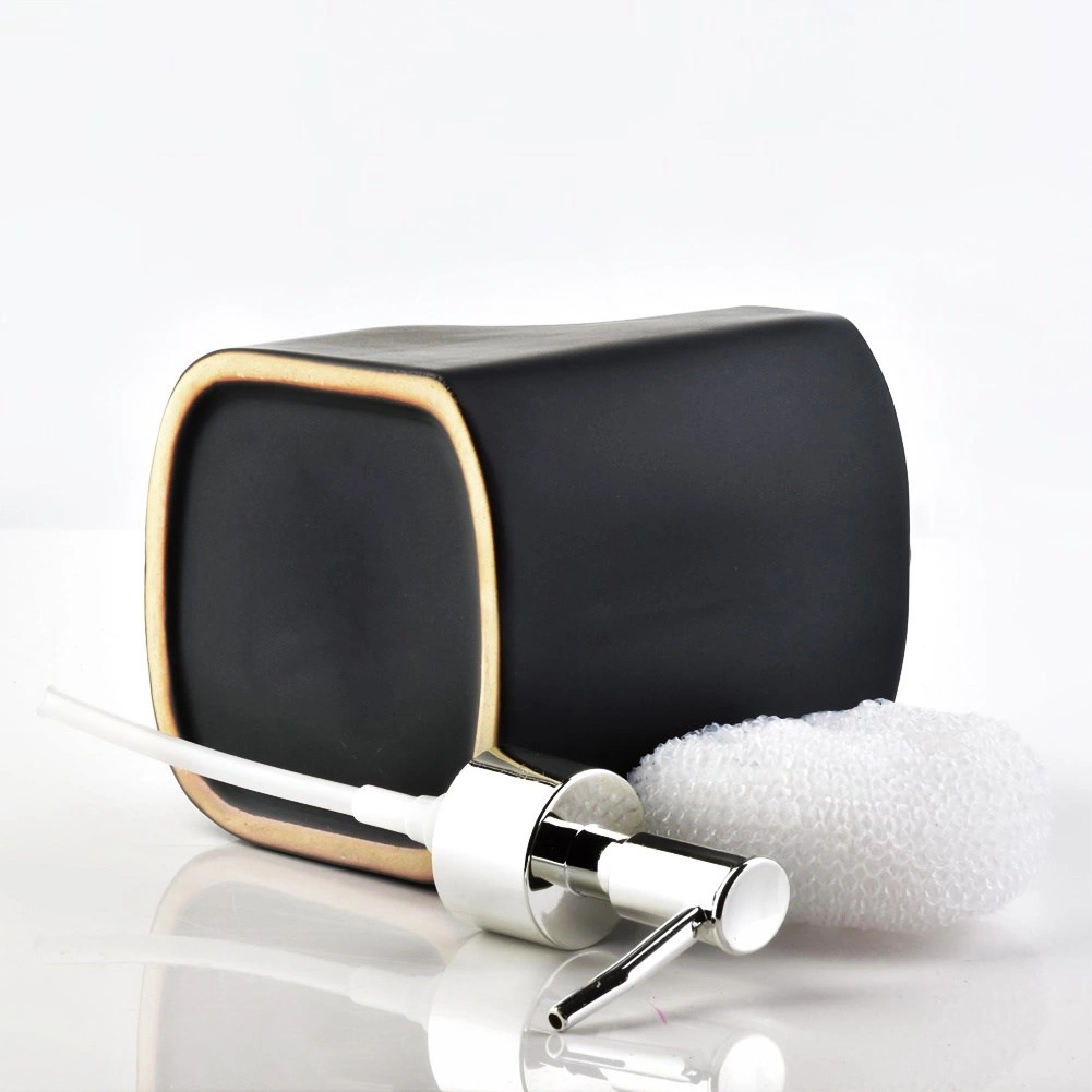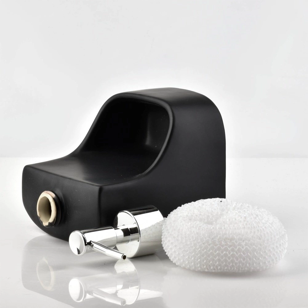 Distributeur de liquide vaisselle en céramique avec porte-éponge, noir, 400 ml