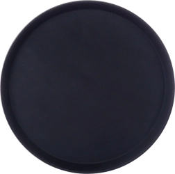 Plateau de service rond de 35 cm de diamètre avec surface antidérapante et bords hauts pour un transport sécurisé des boissons et des plats. Léger, en plastique résistant d’un élégant coloris noir, idéal pour la restauration et la maison, il assure la stabilité des verres, assiettes et couverts.