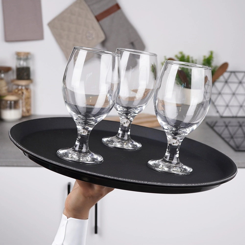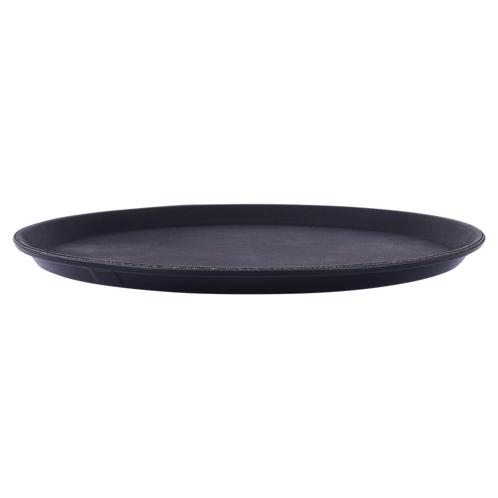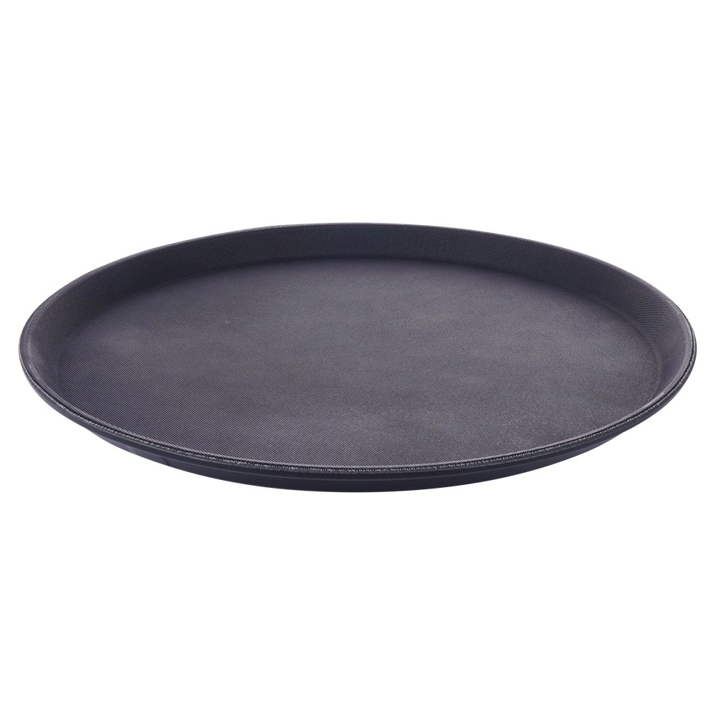 Ce plateau rond noir est un assistant fiable pour le service dans les cafés, restaurants et à la maison. Grâce à sa finition antidérapante, verres et assiettes restent bien en place même lors de mouvements rapides, tandis que le bord surélevé empêche les objets de glisser.