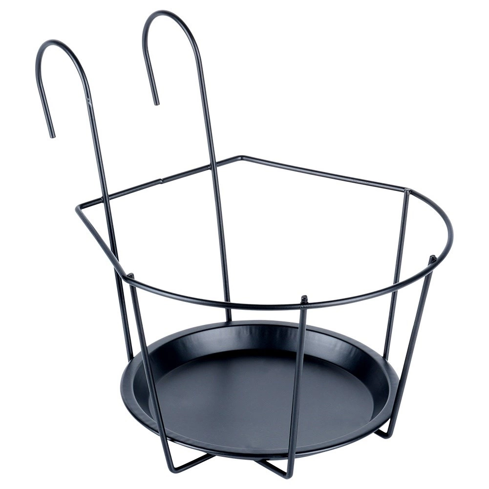 Ce support suspendu noir pour pot de fleurs est conçu pour une fixation rapide sur les rambardes de balcon ou de terrasse. Son cadre en fil métallique robuste et sa base circulaire avec soucoupe assurent la stabilité du pot et la récupération de l’eau excédentaire, protégeant ainsi le sol et la rambarde. Son design minimaliste s’harmonise facilement avec l’extérieur et met en valeur la beauté de vos plantes.