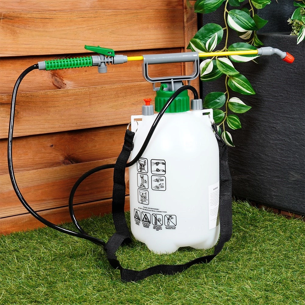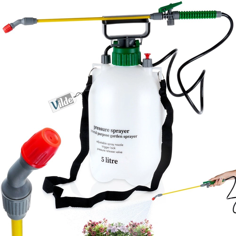 Pulvérisateur manuel à pression pratique de 5 l pour la maison et le jardin. Il offre un jet réglable, un port confortable à l’épaule, une fonction de verrouillage de la gâchette et une mise en pression facile jusqu’à 3,2 bar pour un arrosage, une brumisation et une application de produits de protection des plantes efficaces.