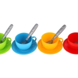 Théière, 4 tasses, 4 soucoupes, 4 cuillères (combinaison de couleurs)