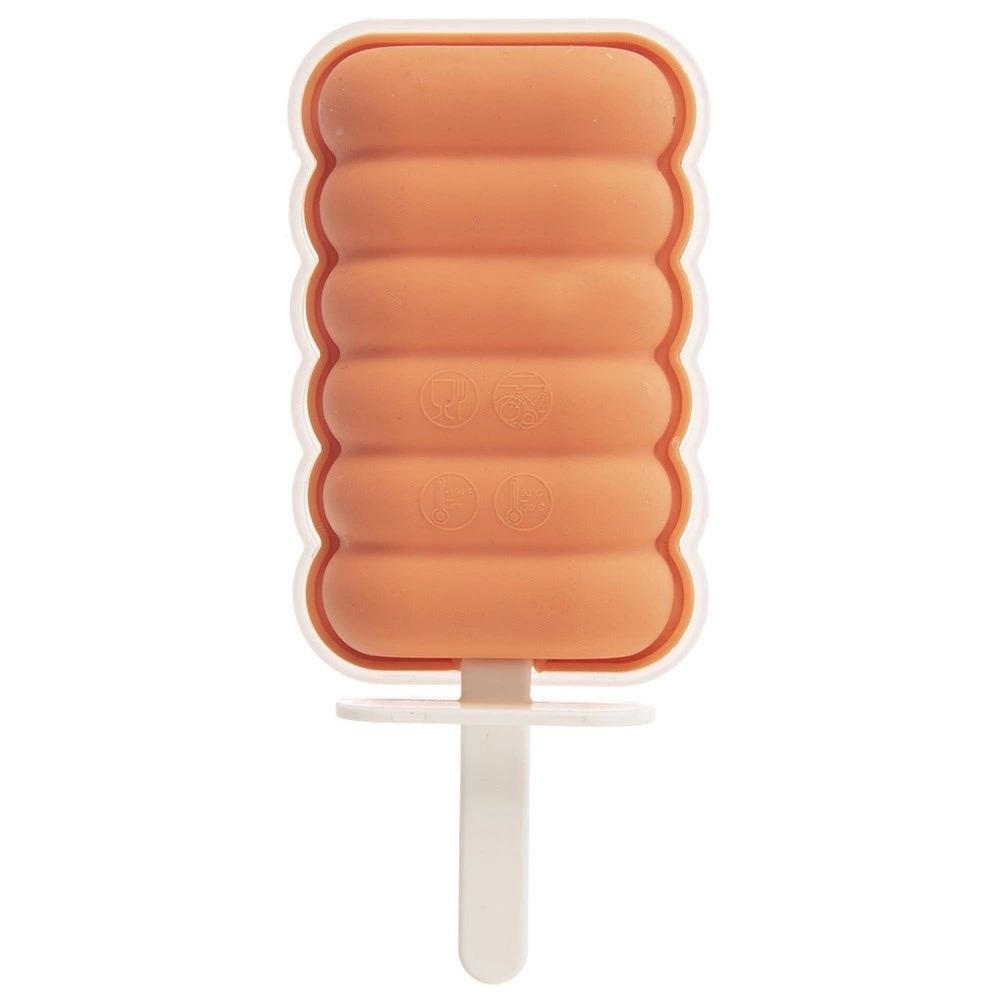Ce moule à esquimaux en silicone résistant, de couleur orange, permet de préparer des douceurs glacées maison saines, exactement selon vos goûts. Grâce au silicone souple, l’esquimau se démoule facilement par légère pression après congélation, et le bâton/poignée en plastique percé(e) de trous assure une prise ferme et une meilleure accroche de la masse glacée. Le couvercle transparent pratique empêche les fuites et protège le contenu des odeurs du congélateur.