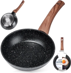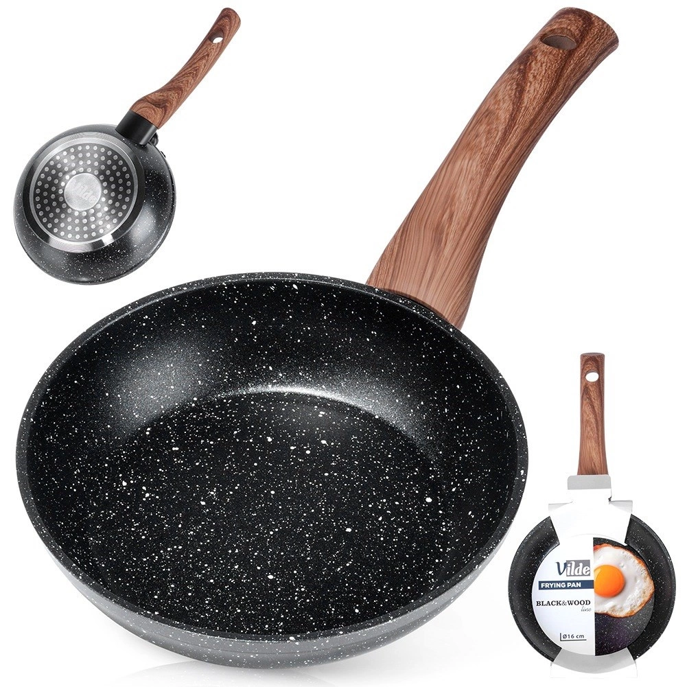 Cette poêle polyvalente en fonte d’aluminium avec revêtement granit antiadhésif est idéale pour frire et mijoter de petites portions – œufs, légumes ou viande. Son design élégant en noir avec poignée aspect bois s’intègre parfaitement dans une cuisine moderne et facilite la préparation quotidienne des repas.