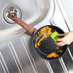 La couche granit spéciale empêche les aliments d’attacher et permet de cuisiner avec un minimum d’huile. Les aliments se détachent facilement et la poêle se nettoie rapidement.