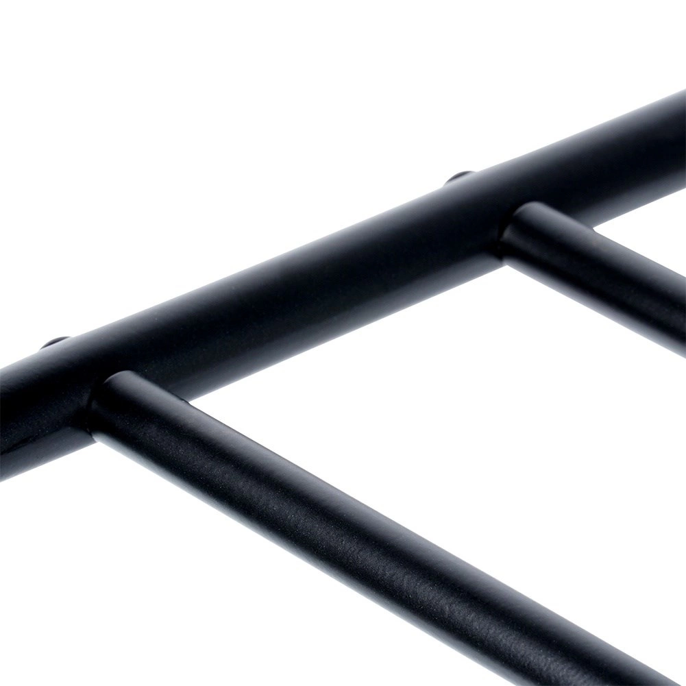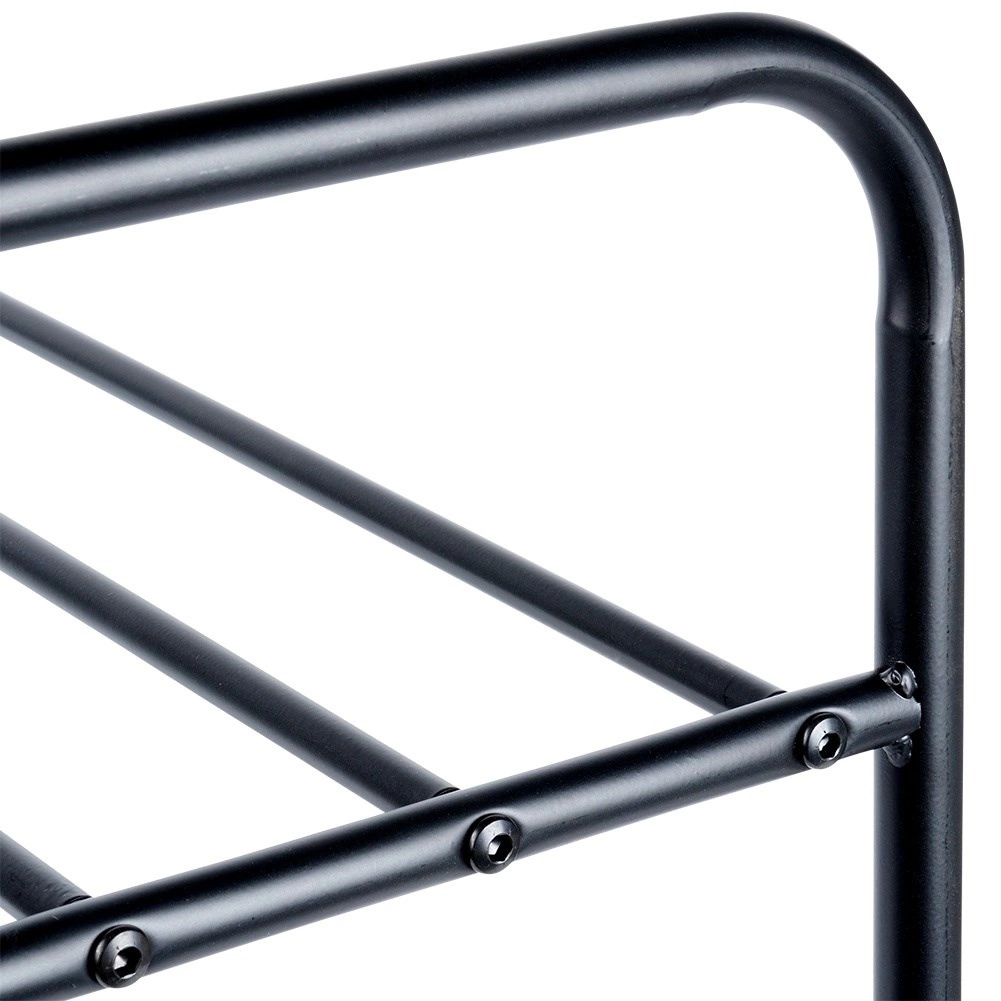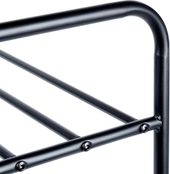 Cette étagère à chaussures métallique à trois niveaux apporte ordre et clarté à votre intérieur. La structure ouverte avec grilles tubulaires permet une circulation de l’air et maintient les chaussures aérées et facilement accessibles. Le cadre robuste en métal peint époxy en noir mat est stable et résistant, tout en restant léger pour un déplacement aisé.