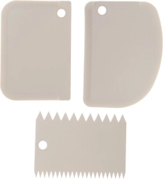 Avec cet ensemble de trois spatules, obtenez des côtés parfaitement lisses et des textures originales sur gâteaux, bûches et pâtisseries. Les bords crantés créent des effets de vagues, de rayures ou de lignes, tandis que les spatules lisses assurent une répartition uniforme des crèmes et glaçages. Grâce à leur construction légère et solide, la prise en main est excellente et le travail rapide et précis.