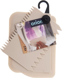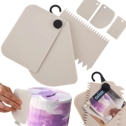 Les spatules sont fabriquées en plastique de qualité, qui n’absorbe pas les odeurs et se nettoie facilement – vous pouvez les mettre au lave-vaisselle sans crainte. Le set complet est relié par un anneau avec crochet de suspension, vous avez ainsi tous les profils à portée de main tout en économisant de la place en cuisine. Convient aux professionnels comme aux pâtissiers amateurs.