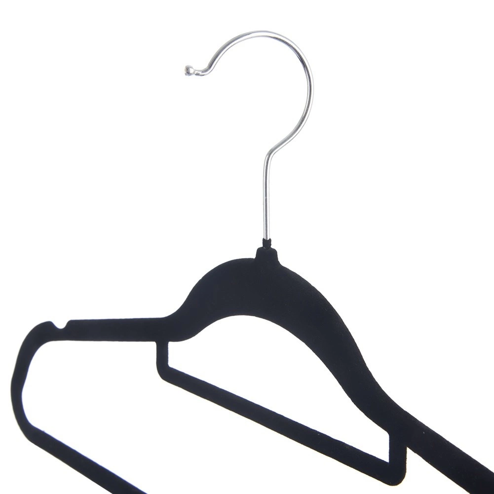 Organisez vos vêtements avec style et sans faux plis. Les cintres au revêtement en velours doux maintiennent en sécurité même les matières glissantes, protègent les tissus et, grâce au crochet pivotant, se placent facilement dans tout espace. La finition noire élégante s’intègre à toute armoire.