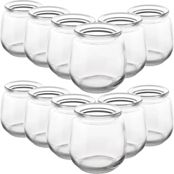 Pratique lot de 12 pots en verre de 300 ml, idéal pour servir des yaourts, desserts, confitures et petites collations. Grâce au large goulot, ils se remplissent et se nettoient facilement ; le verre transparent et épais met élégamment en valeur les couches et les couleurs des préparations. Les pots sont résistants, compatibles lave-vaisselle, réfrigérateur et congélateur, et supportent des températures jusqu’à +80 °C. Parfaits pour la maison comme pour la restauration, la pâtisserie et le catering.