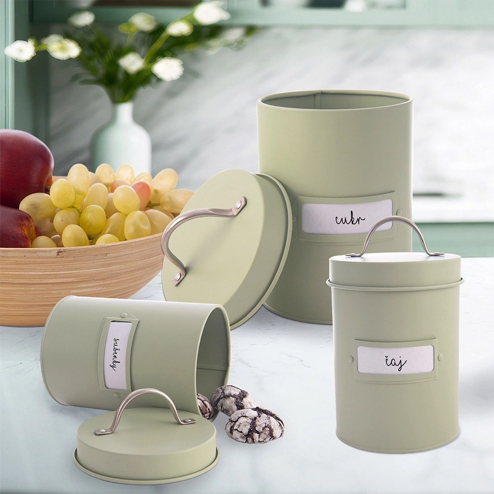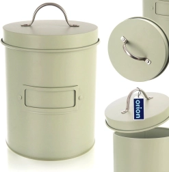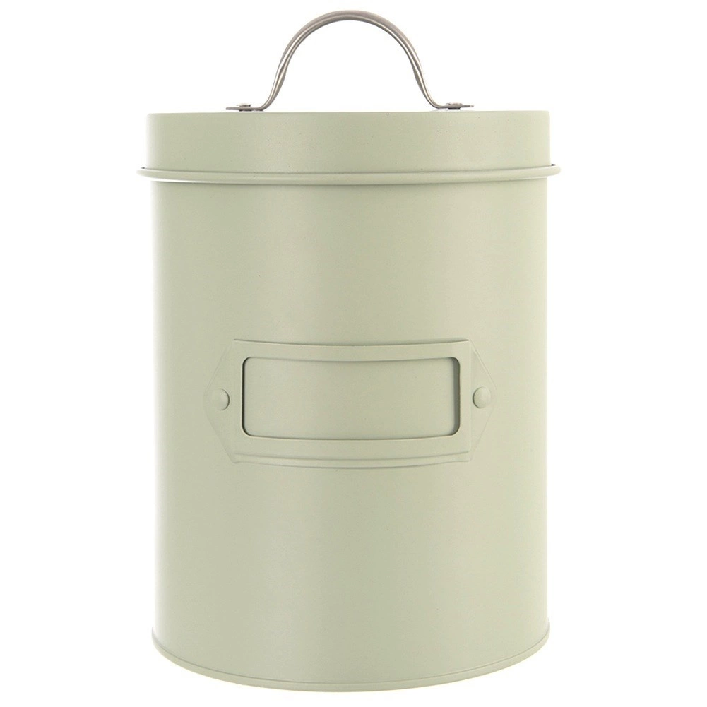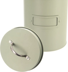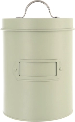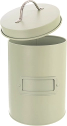 Une boîte métallique élégante d’un volume de 1,3 l dans une couleur verte moderne garde vos aliments secs frais plus longtemps. Elle possède une structure métallique robuste, un couvercle facilement amovible avec poignée métallique et un porte-étiquette pratique pour identifier rapidement le contenu.