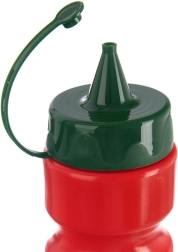 Cette bouteille en plastique rouge avec couvercle vert foncé est conçue pour un service propre et précis du ketchup et d’autres sauces. Grâce à ses parois souples, vous réglez facilement le débit, et la buse étroite permet d’appliquer la quantité exacte sans gouttes. Le couvercle flip protège l’embout de la saleté et garde le contenu frais plus longtemps.