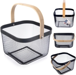 Ce panier pratique combine une maille métallique résistante avec une poignée en bambou confortable, ce qui facilite le transport tout en gardant l’ordre dans chaque pièce. Grâce à sa conception aérée, il est parfait pour conserver les fruits et légumes, mais aussi pour un rangement clair des serviettes, cosmétiques et petits objets.