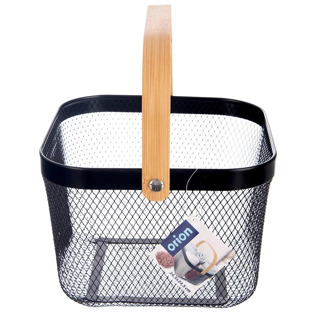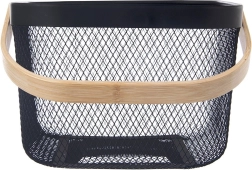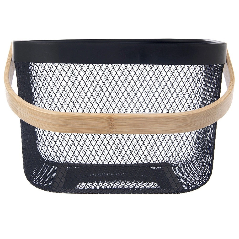 Panier de rangement en métal noir avec poignée en bambou RADKA 27 × 24,5 × 17,5 cm