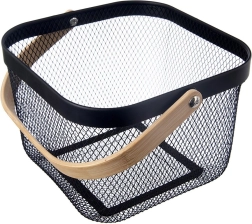 Son design noir élégant s’intègre aux intérieurs modernes comme scandinaves et sert de décoration pratique. Les dimensions extérieures du panier sont 27 × 24,5 × 17,5 cm, sans la poignée 24,5 × 24,5 cm – taille idéale pour le plan de travail de la cuisine, le dessus de la salle de bain ou une étagère du salon.
