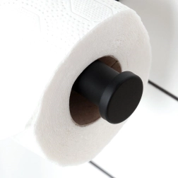 Ce porte-papier toilette minimaliste en noir mat complète à merveille les salles de bains modernes comme classiques. L’acier inoxydable de qualité garantit une longue durée de vie et une résistance à l’humidité, tandis que l’extrémité ouverte du bras permet un remplacement rapide et pratique du rouleau.