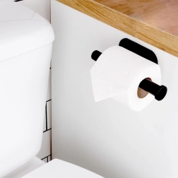 L’installation est extrêmement simple : fixez le support sur les carreaux, murs peints ou toute surface lisse à l’aide de la bande adhésive double face fournie, donc sans perçage ni salissures. La forme élégante avec embout anti-glissement maintient le rouleau toujours en place et à portée de main.