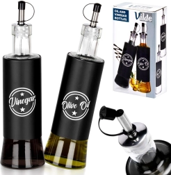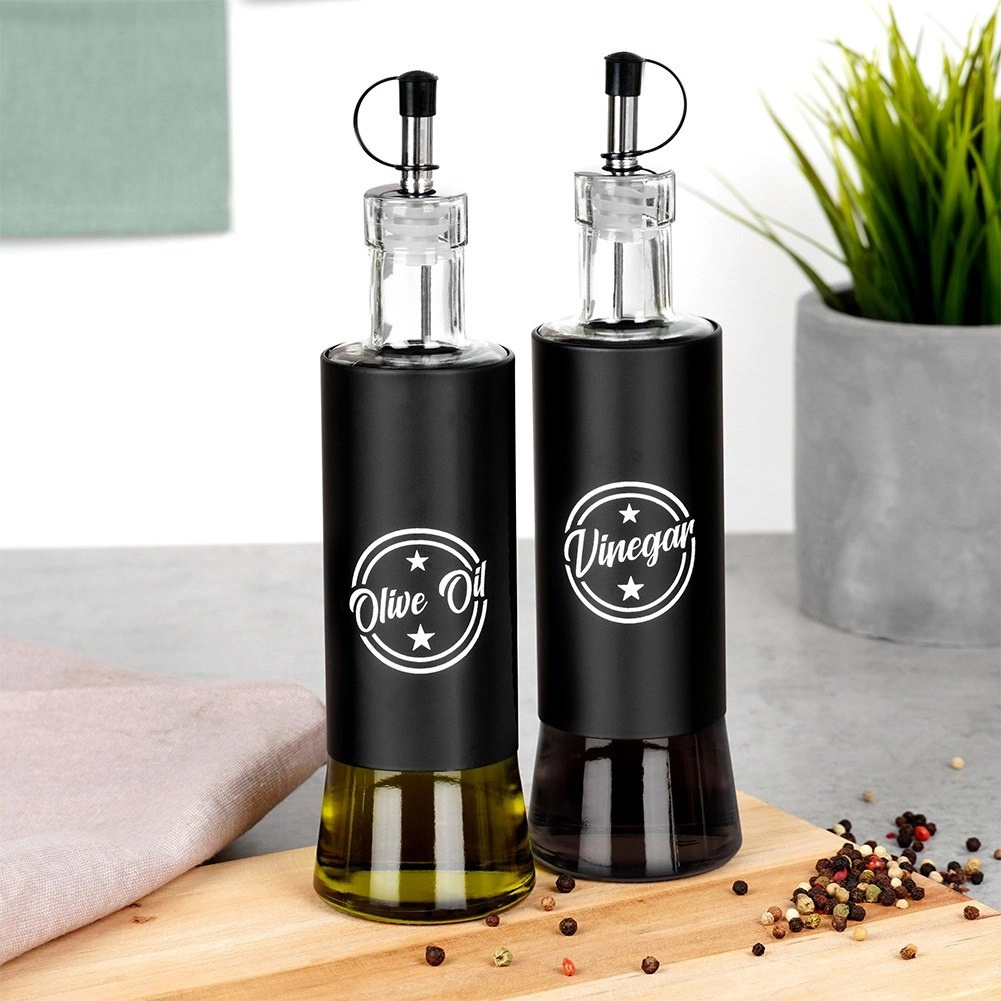 Distributeurs en verre pour huile et vinaigre 300 ml, noirs, lot de 2