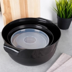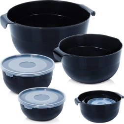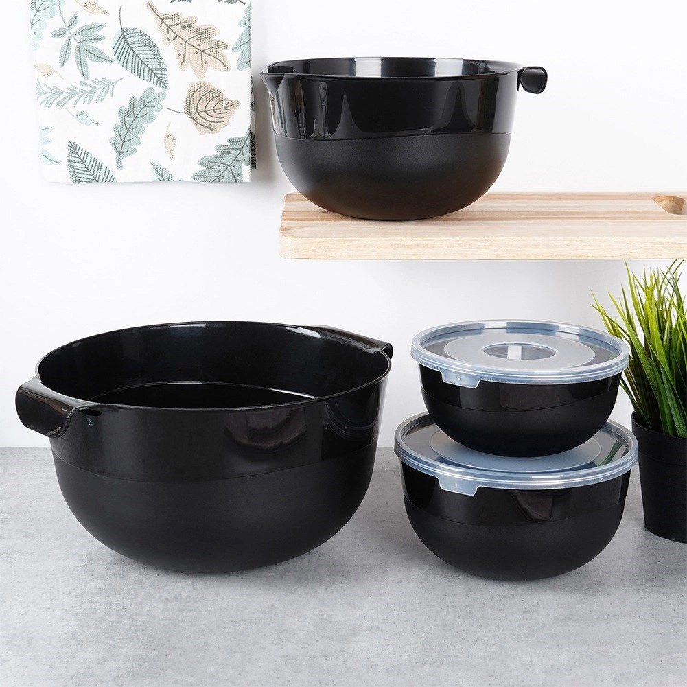 Avec cet ensemble de 6 pièces, vous obtenez quatre bols robustes de couleur noire moderne et deux couvercles transparents pour un rangement facile. Les petits bols avec couvercles sont idéaux pour conserver des ingrédients préparés au réfrigérateur, tandis que les grands bols avec poignées et becs verseurs simplifient le mélange des pâtes, le fouettage et le versement de la pâte à crêpes.