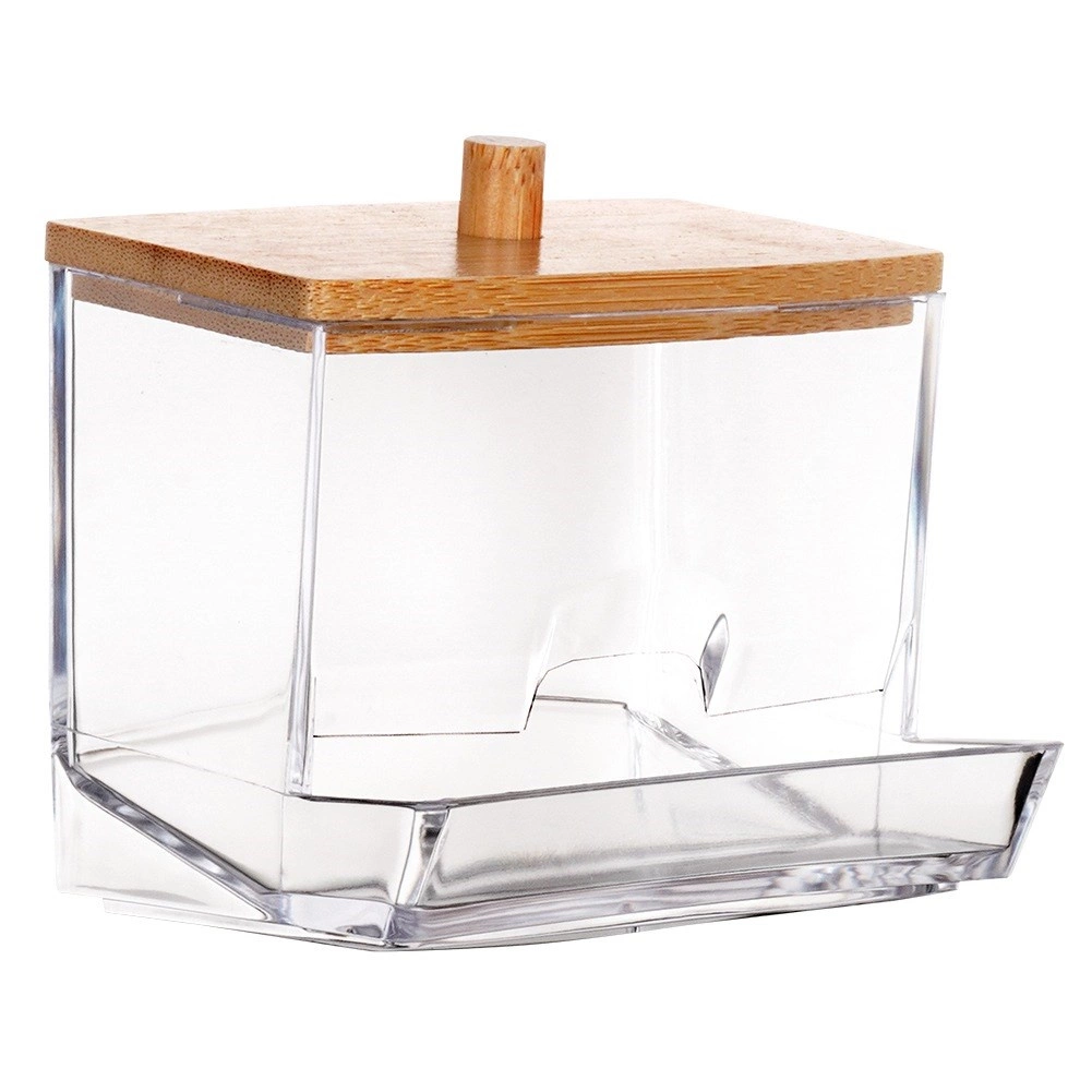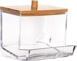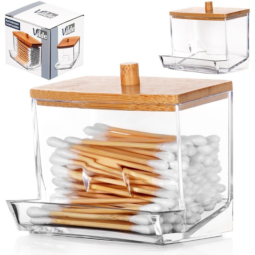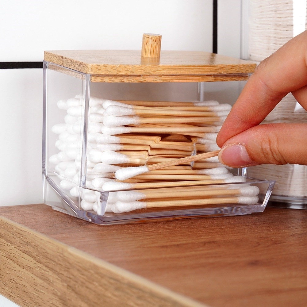 Ce distributeur élégant de cotons-tiges combine un acrylique clair pour une visibilité parfaite du contenu et du bambou naturel pour un look chaleureux et moderne. L’ouverture frontale permet de retirer facilement une tige, tandis que le couvercle avec poignée garde le contenu hygiéniquement propre et à l’abri de la poussière.