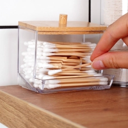 Distributeur de cotons-tiges avec couvercle en bambou 9 × 7,3 × 9 cm