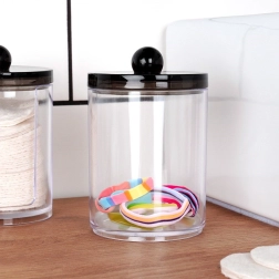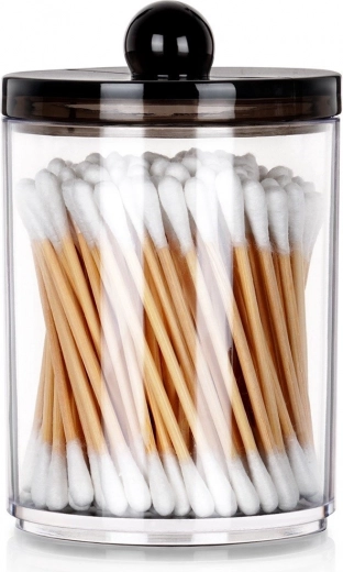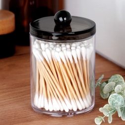 Gardez vos petits accessoires de beauté bien organisés au même endroit. Ce distributeur acrylique transparent est idéal pour les cotons-tiges ou les disques démaquillants. Son design minimaliste avec couvercle noir s’intègre à toute salle de bain moderne tout en protégeant le contenu de la poussière.