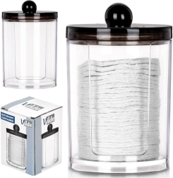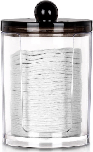 Élégant organisateur pour tampons démaquillants en acrylique transparent de qualité, offrant un contrôle immédiat du niveau de stock, tandis que le couvercle solide noir avec bouton pratique protège le contenu de la poussière et de l’humidité. Sa taille compacte de 7 × 11 cm économise de la place sur le lavabo ou la coiffeuse, tout en contenant une quantité suffisante de tampons pour un usage quotidien.