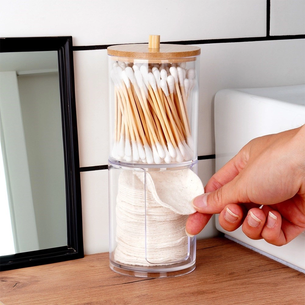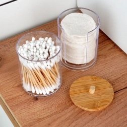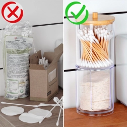 Séparez cotons-tiges et disques dans un seul organisateur compact. Le matériau transparent garantit une vision immédiate et une allure élégante.