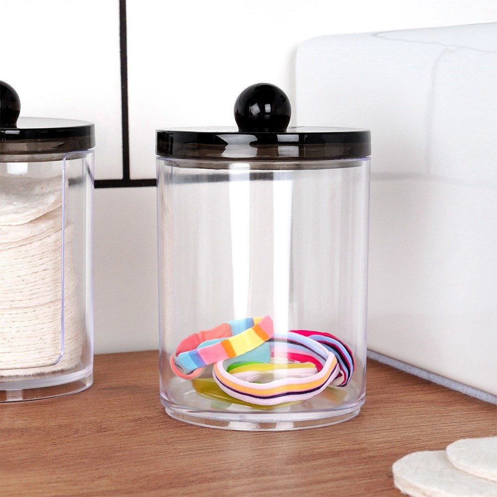 Les parois claires en acrylique résistant permettent de contrôler les stocks, tandis que le couvercle noir élégant apporte une touche moderne à votre salle de bain.