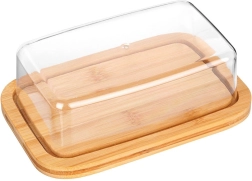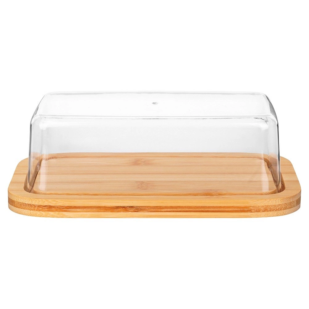 Ce beurrier pratique combine bambou naturel et couvercle transparent pour un rangement du beurre moderne et hygiénique au réfrigérateur ainsi qu’un service élégant à table. Grâce au couvercle clair, vous voyez toujours le contenu, tandis que l’ajustement précis du couvercle aide à garder le beurre frais plus longtemps.