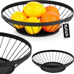 Élégant panier à fruits NAVA Misty noir de 28 cm de diamètre, combinant design industriel moderne et circulation d’air pratique pour une fraîcheur prolongée. Stable, spacieux et résistant grâce à un métal de qualité avec finition mate thermolaquée, idéal pour le plan de travail ou la table de salle à manger.