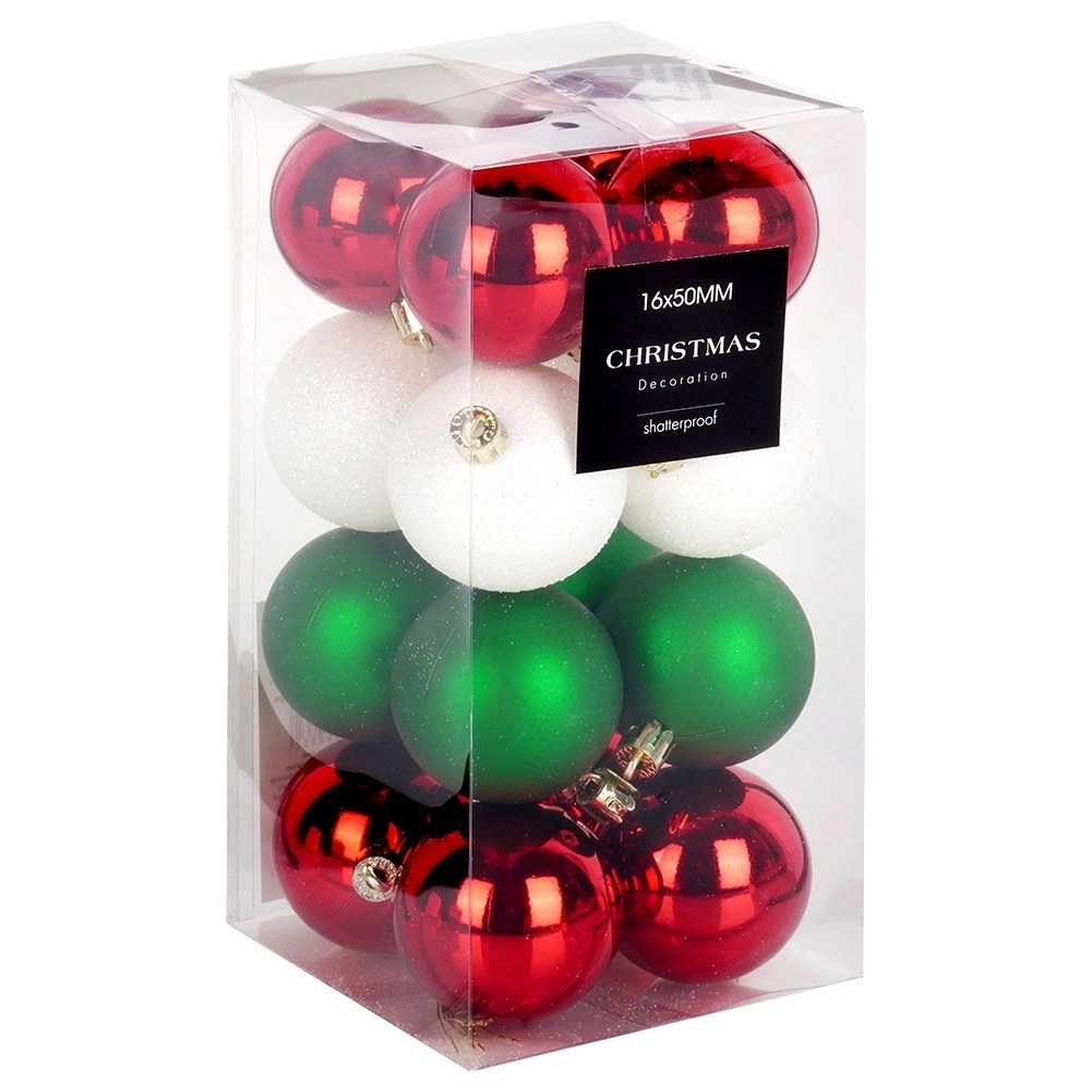 Décorez votre sapin avec un élégant lot de 16 boules incassables dans un mélange de couleurs de Noël traditionnel. La combinaison de finitions brillantes, mates et pailletées crée un effet équilibré et stylé qui se distingue aussi bien sur un sapin classique que dans des décorations d’intérieur modernes.