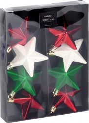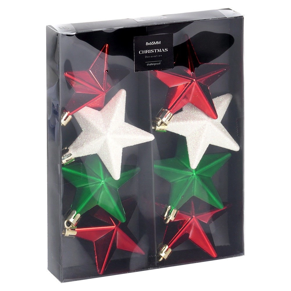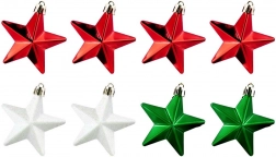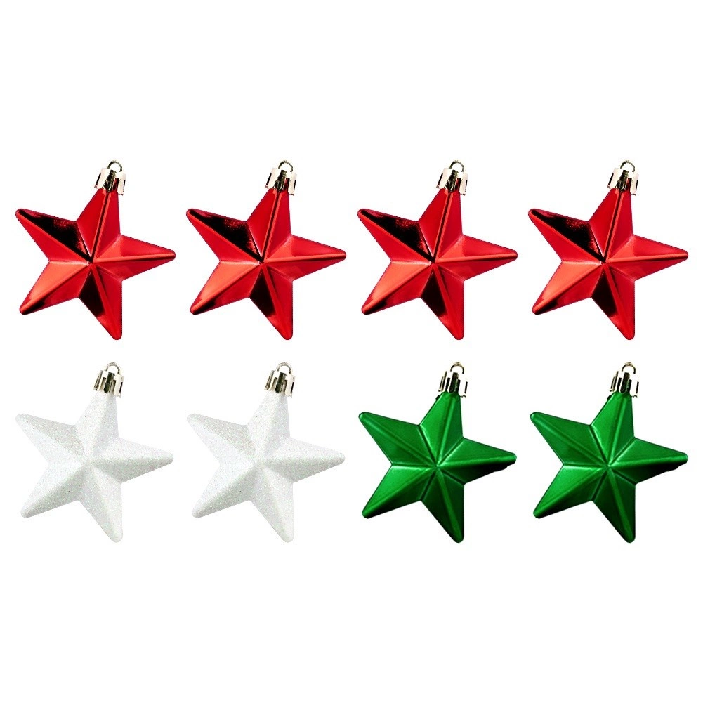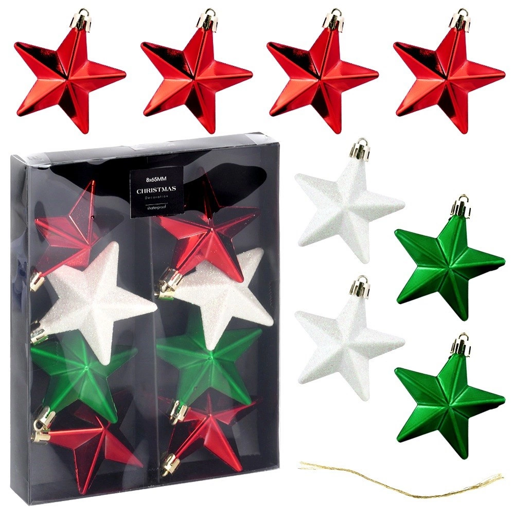 Set d’étoiles de Noël incassables pour sapin 6,5 cm, rouges, vertes et blanches, 8 pcs