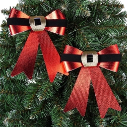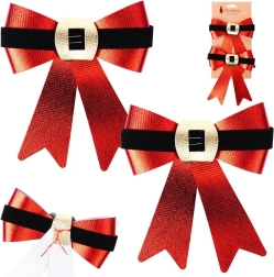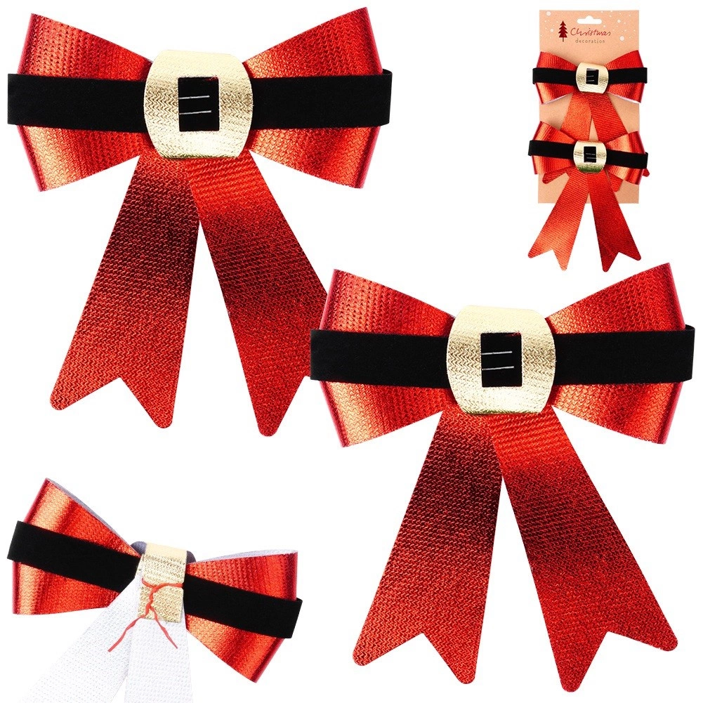 Ces nœuds décoratifs se distinguent par leur brillance rouge métallisée et leur détail stylé sous la forme d’une sangle noire avec boucle dorée, évoquant un motif de Noël iconique. Idéals pour décorer le sapin, les couronnes, les fenêtres, appuis de fenêtre et vitrines, ils créent en un instant une atmosphère festive.
