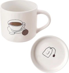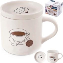 Ce mug élégant de couleur beige avec un motif subtil de thé est un excellent choix pour les rituels du quotidien. Le couvercle aide à maintenir la température de la boisson et sert également de petit plat pratique pour poser le sachet de thé après infusion. Le grand volume de 420 ml vous permet de savourer davantage de votre boisson préférée sans devoir remplir souvent.