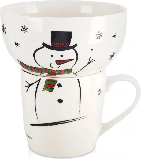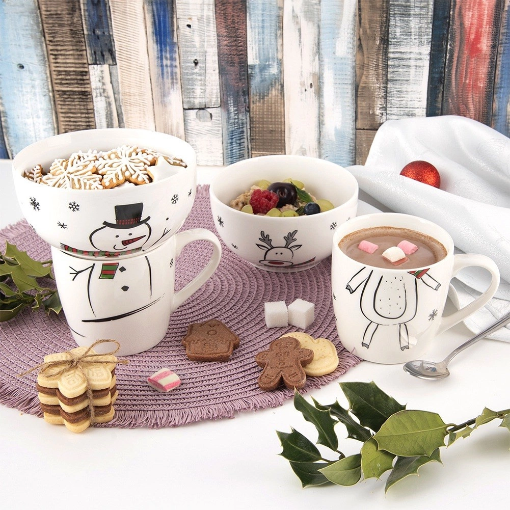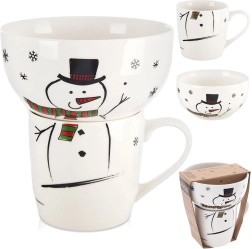 Adorable set de petit-déjeuner pour enfants et adultes qui associe une tasse et un bol dans un motif unifié de bonhomme de neige. Idéal pour le petit-déjeuner, les en-cas et les soupes. Fabriqué en porcelaine de qualité, compatible lave-vaisselle et micro-ondes, avec un grand volume et un motif hivernal que les enfants adoreront.