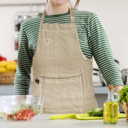 Le tablier est confectionné en 100 % coton, doux au toucher, durable et simple à entretenir – lavable jusqu’à 40 °C. Sa teinte olive claire et neutre s’intègre à merveille dans une cuisine moderne comme dans un atelier. Parfait pour les cuisiniers à domicile, les amateurs de barbecue, de pâtisserie ou d’activités créatives.