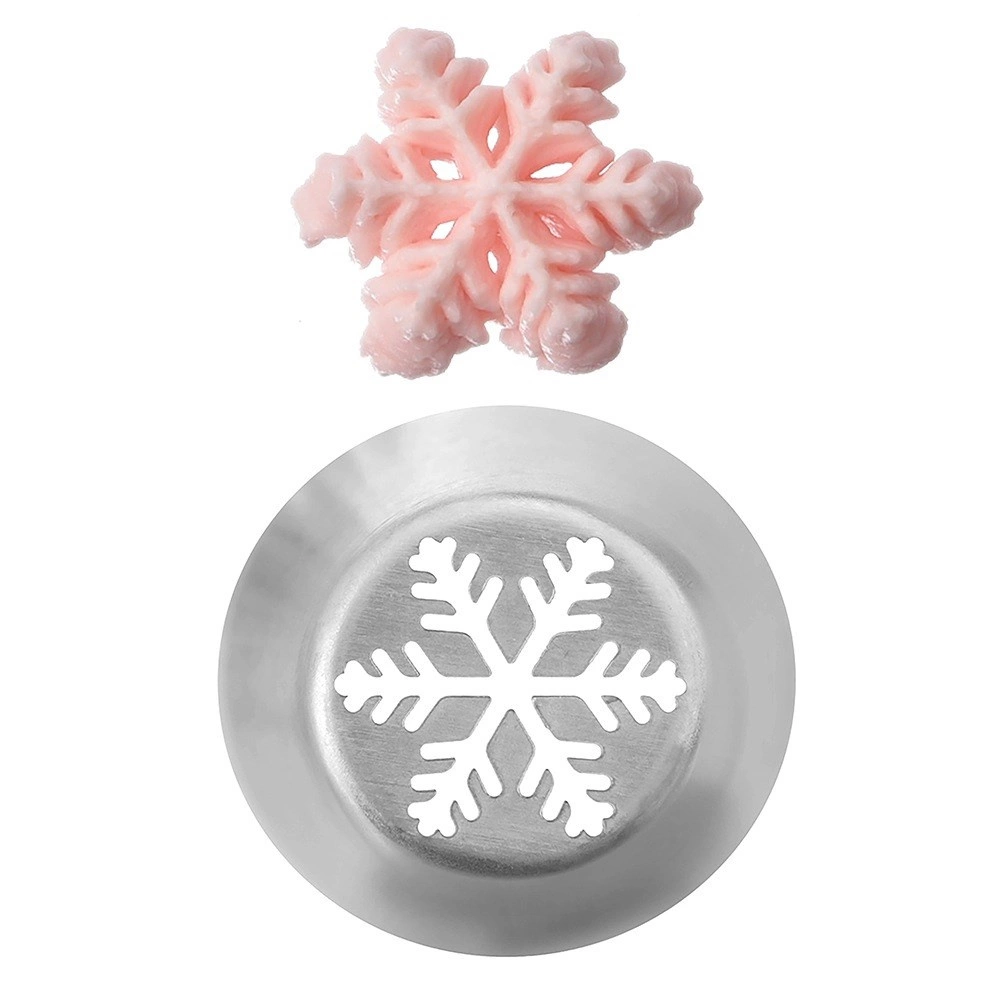 Douille pâtissière universelle en acier inoxydable pour créer des décorations en forme de flocon de neige. Idéale pour gâteaux, entremets et cupcakes, compatible avec les poches à douille standard, durable, sans danger pour les aliments et compatible lave-vaisselle.