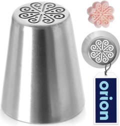 Cette douille russe à ouverture florale vous permet de créer en un instant de magnifiques fleurs en crème au beurre ou meringue. Idéale pour décorer gâteaux, tartes et petits desserts. Le corps en acier inoxydable assure une longue durée de vie, un nettoyage facile et un contact alimentaire sûr.
