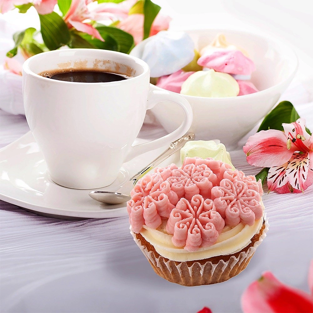 La découpe spéciale crée des fleurs généreuses sans technique complexe – idéale pour gâteaux et cupcakes.
