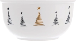 Élégant bol en porcelaine avec motif de sapins de Noël d’une capacité de 560 ml et d’un diamètre de 13,5 cm, idéal pour le quotidien comme pour les repas de fête. La porcelaine blanche de qualité avec un décor noir et doré complètera joliment votre décoration d’hiver et, grâce à la possibilité de lavage au lave-vaisselle et d’utilisation au micro-ondes, garantit un usage pratique.
