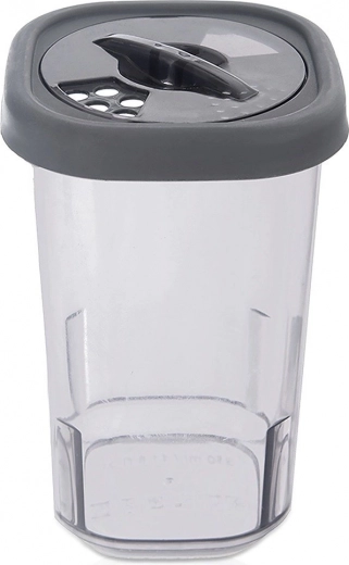 Fabriquée en plastique résistant sans BPA. Compatible lave-vaisselle, et utilisable au micro-ondes sans le couvercle. Idéale pour les épices, le sucre glace et les décors alimentaires.