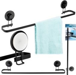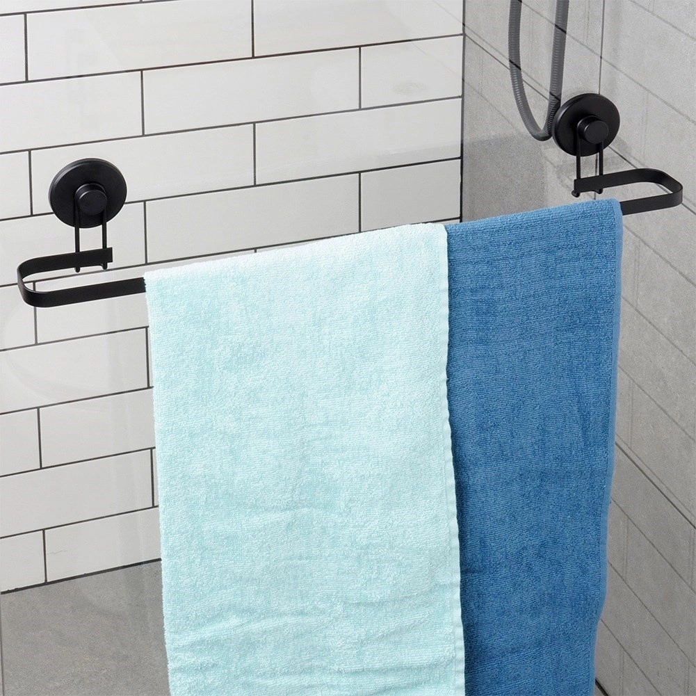 Ce porte-serviettes minimaliste en noir mat allie design épuré et fonctionnalité au quotidien. Grâce à deux grandes ventouses, il se fixe facilement et rapidement sur des surfaces lisses, comme le verre ou le carrelage, sans perçage – vos murs restent intacts.
