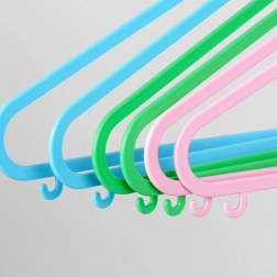 Le lot de cintres pour enfants en plastique de qualité, en bleu, rose et vert, aide à garder l’armoire en ordre et protège les vêtements du froissage. La forme ergonomique aux bords arrondis est sûre pour les enfants et délicate pour les tissus. Une structure légère mais robuste qui ne se déforme pas même en cas d’utilisation fréquente.