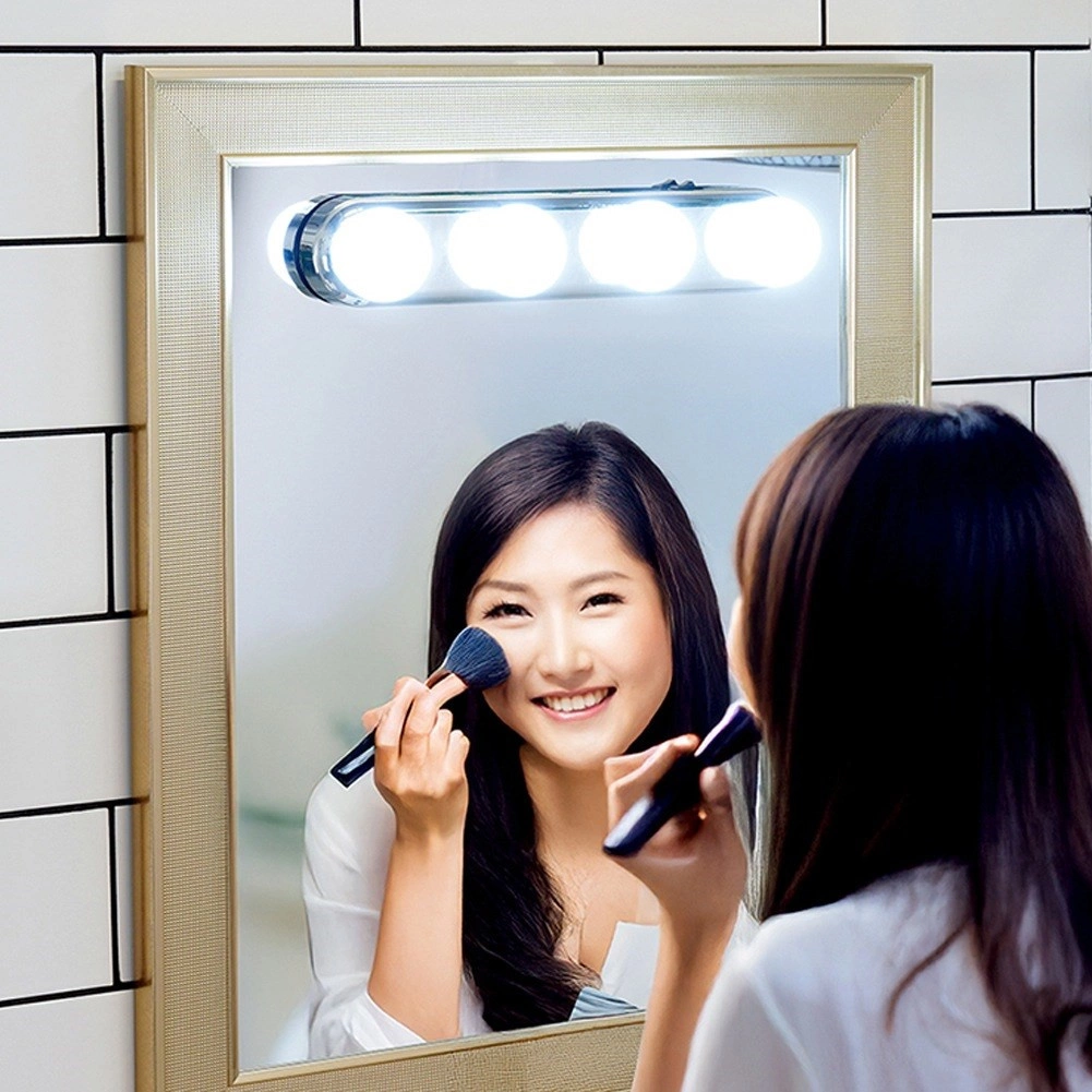 Pratique, la lampe de miroir avec quatre ampoules LED offre une lumière blanche vive et uniforme pour le maquillage et les soins quotidiens. Grâce à sa fixation facile par ventouses sans outils, vous l’installez rapidement sur tout miroir lisse. Elle est alimentée par piles, mobile et fabriquée en matériau de qualité résistant, idéale pour la salle de bain, la chambre et le dressing.