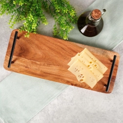 Planche de service en bois avec poignées métalliques 40 × 15,5 cm en acacia