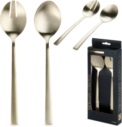Élégant lot de deux cuillères de service pour salade de 25 cm, dans une finition dorée moderne à surface satinée. Fabriquées en acier inoxydable de qualité, parfaites pour mélanger et servir les salades et d’autres plats. Pratiques, résistantes et compatibles lave-vaisselle – idéales pour le quotidien comme pour les occasions festives.
