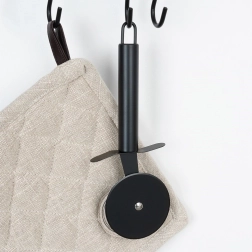 Fabriquée en acier inoxydable de haute qualité avec un revêtement poudré noir mat pour une longue durée de vie et un entretien facile. La poignée ergonomique tient bien en main, le protège-doigts renforce la sécurité et l’œillet de suspension permet de garder la roulette toujours à portée.
