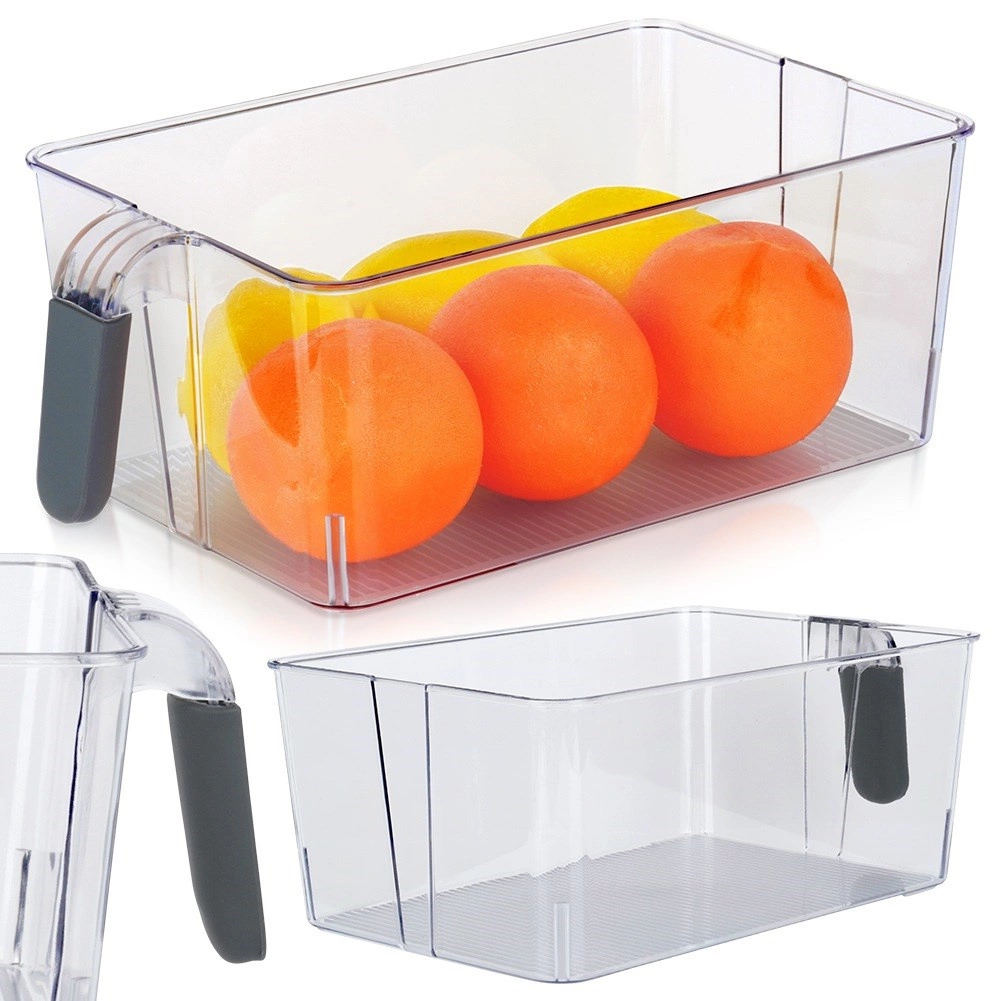 Organisateur transparent pratique pour réfrigérateur, dimensions 31 × 18 × 11,5 cm, avec poignée confortable pour le faire glisser facilement de l’étagère. Idéal pour ranger de manière ordonnée les aliments, fruits et légumes. Fabriqué en plastique de qualité, il est résistant, sans danger pour les aliments et facile à nettoyer.